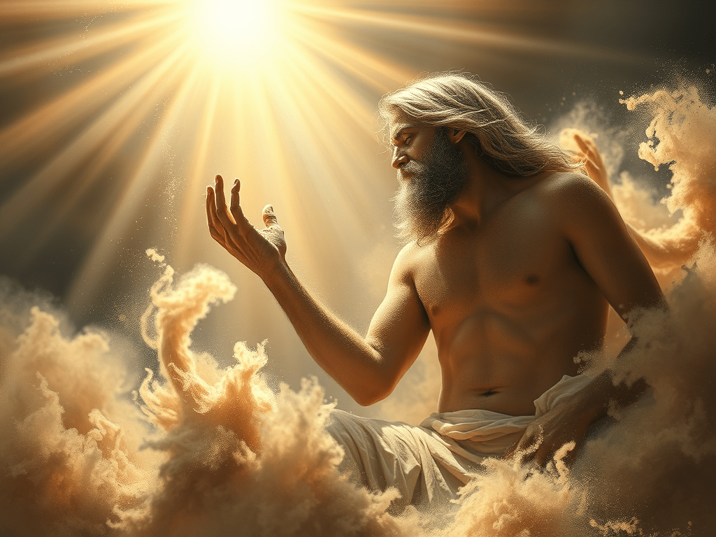 Day six reaches its height with the creation of humankind. For the first time, God speaks in the plural—“Let us make”—and humans are made in the “image” and “likeness” of God. They are tasked with ruling over all other living creatures and blessed with fertility and dominion. These verses mark a major theological and literary shift, setting humans apart not just in form, but in function and authority.